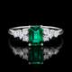 Emerald-Cut Green Stone & D...Elegant Dual-Tone Diamond Bypass Ring for Women | Silver & Rose Gold Finish