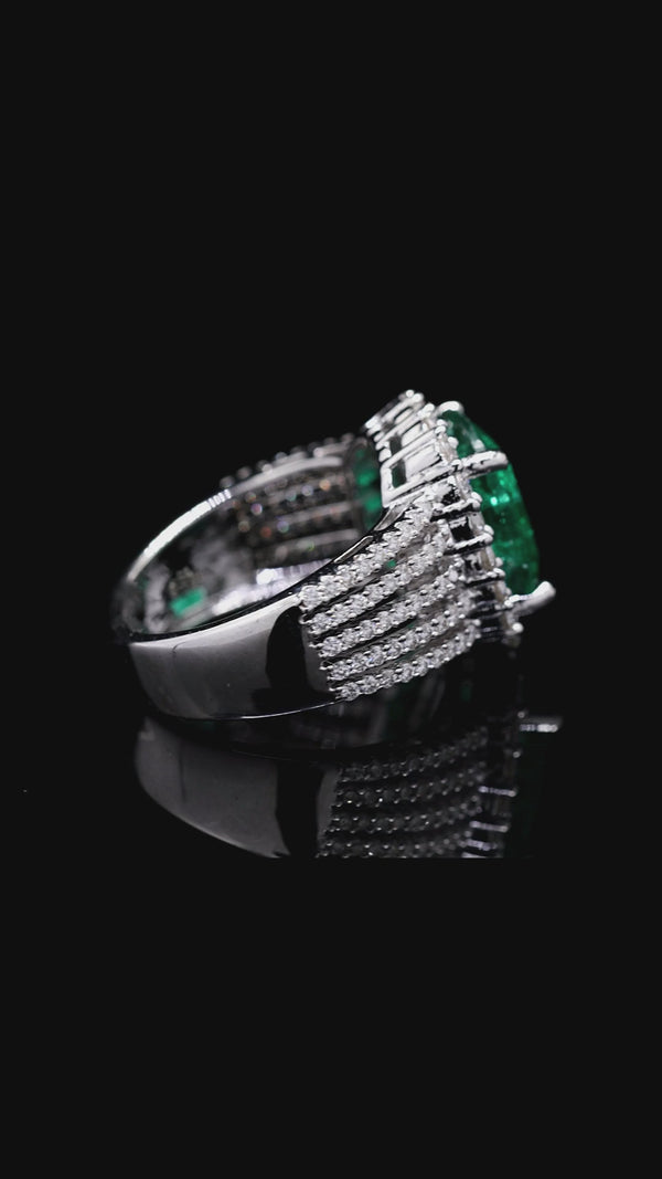 Emerald Halo Brilliance Rin...Moissanite Halo Ring in Silver – Radiant Elegance with Emerald Center