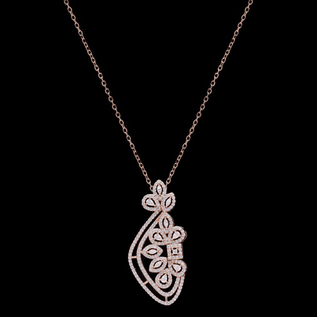 a rose gold-plated cubic zirconia pendant and earring set.