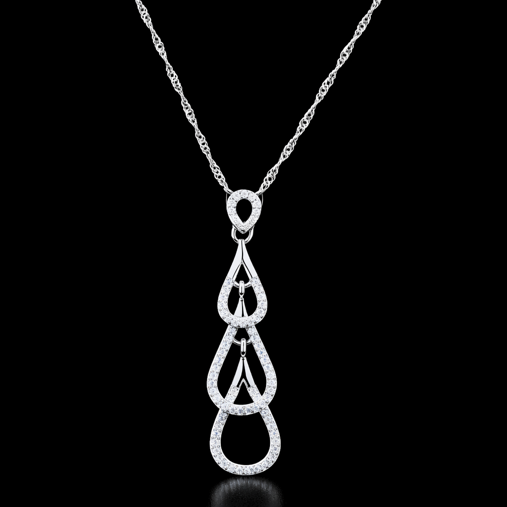 Experience refined elegance with this exquisitely crafted diamond cascade silver pendant, designed to embody fluid beauty and timeless sophistication. Featuring a vertical arrangement of delicately interlinked teardrop motifs, the pendant creates a graceful cascading silhouette that elongates the neckline and captures light with effortless charm.