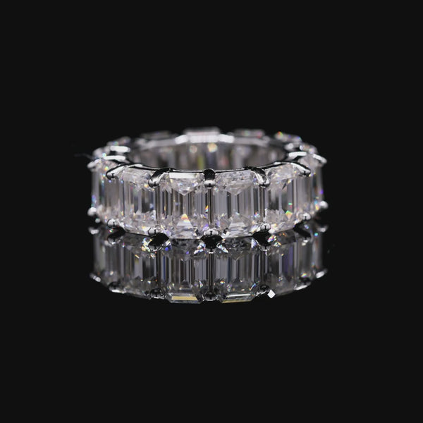 Emerald-Cut Diamond Eternity Ring in 925 Sterling Silver – Full Band Luxury Statement