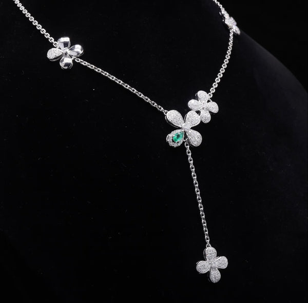 A symbol of effortless luxury and delicate craftsmanship, this emerald floral lariat pendant is designed for those who appreciate enduring style, fine detailing, and understated glamour.