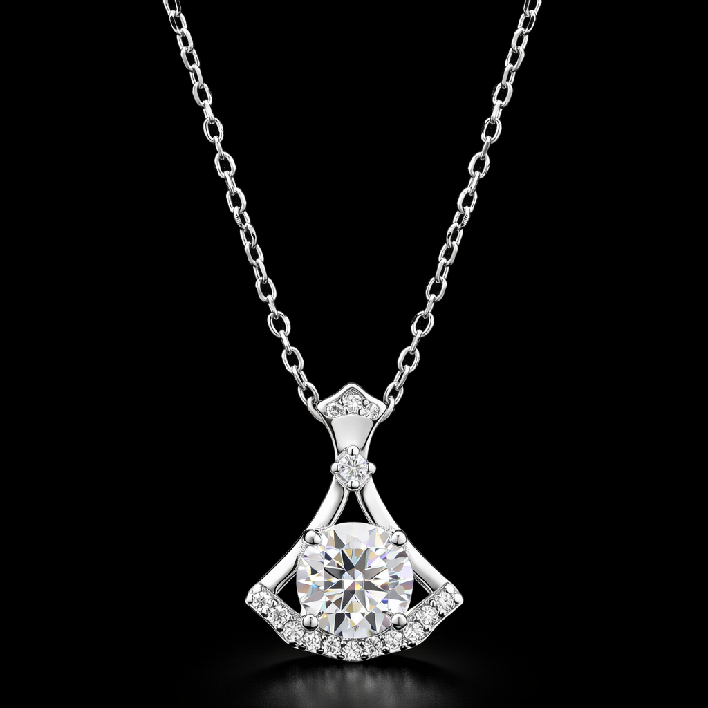 Elevate your everyday elegance with this exquisitely crafted solitaire silver pendant necklace, designed to exude refined luxury and understated sophistication. At the center lies a flawlessly cut round brilliant stone, expertly set to maximize light reflection and deliver exceptional sparkle from every angle. The sculpted sterling silver mount is accented with micro-set stones, creating a graceful, crown-inspired silhouette that enhances the pendant’s brilliance without overpowering its delicate form.